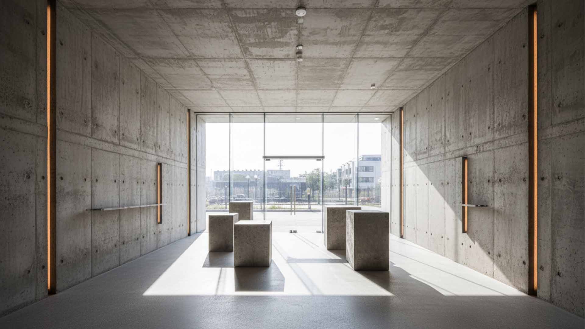 A modern architectural design characterized by a focus on balancing private spaces and green nature.